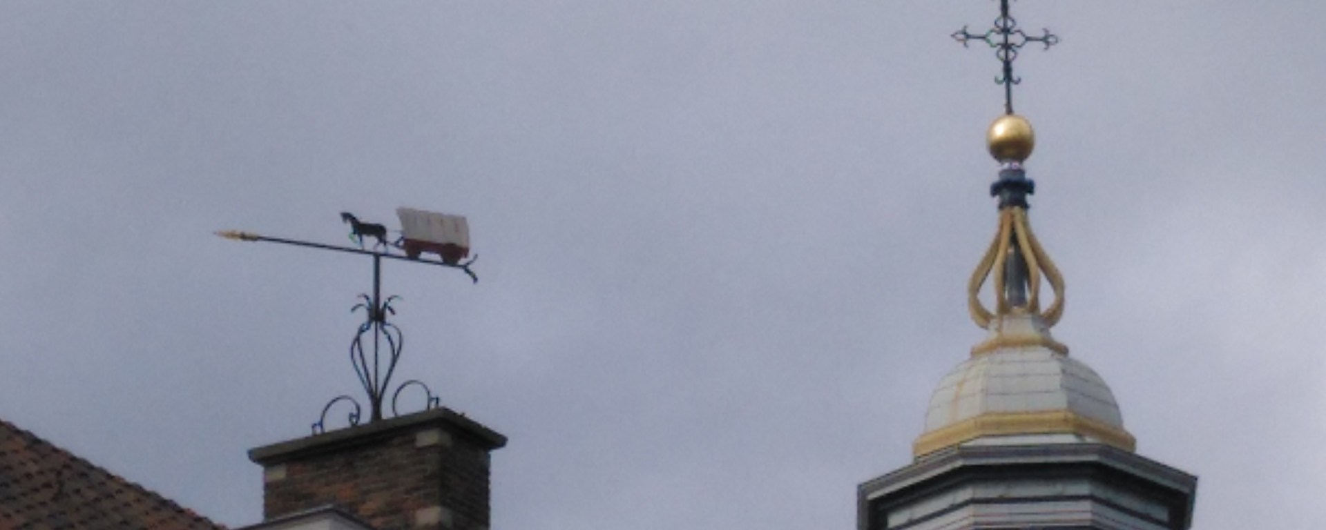 Y aquí podemos ver un bonito ejemplar de veleta, tan sencillo y bonito como un carro tirado por un caballo. Descartamos la idea de si se dirigen al oeste, pero seguro que dentro de él llevan todo tipo de mercancías listas para vender, como buenos comerciantes que son los autóctonos del país de los tulipanes.