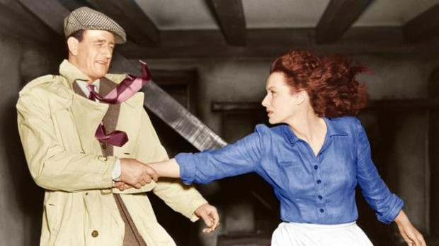 Ayer vi «El hombre tranquilo» de John Ford en pantalla grande, en la pared de mi casa vaya, porque tal y como está el patio… Hacía tanto tiempo que no la veía, que se me habían olvidado un montón de detalles de la película. Detalles que a medida que pasa el tiempo cobran más sentido. La vuelta de Sean Thornton (John Wayne) al hogar que le vio nacer en la campiña irlandesa, en el inolvidable pueblo de Innisfree. Thornton vuelve con muchas experiencias vividas, no es de allí ni de allá, es simplemente una persona en busca de un poco de paz, donde el dinero no prime en la vida de la gente. Una tarea algo complicada, y más ahora en los tiempos que corren.
