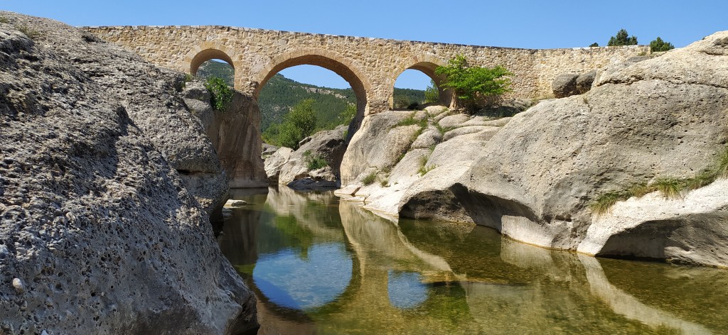 Después de pasar por el pintoresco Belmonte de San José, La Cañada de Verich, y luego La Ginebrosa, llegué a el pueblo de Aguaviva, pequeño, interesante, pero que gracias a el río Bergantes y sus pozas, le han puesto en el mapa. Hay un punto en el río, donde un puente de piedra cruza el Bergantes, donde los recovecos para bañarse se suceden. Lo mejor es bañarse cuando todavía no ha llegado el tumulto de gente que al parecer cada vez más gente llega hasta allí para darse unos baños.